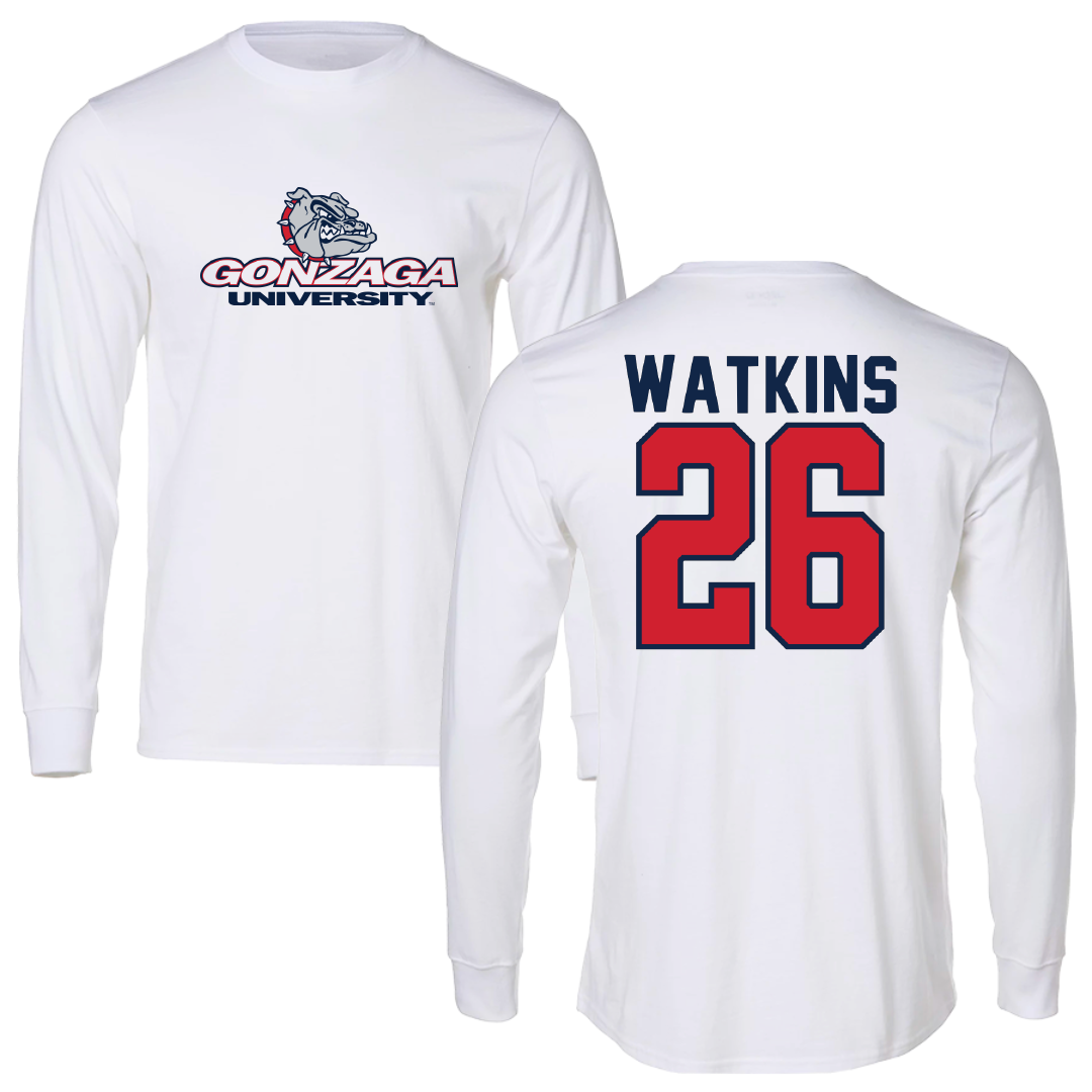 Gonzaga University Soccer White Performance Long Sleeve - #26 Tanner Watkins