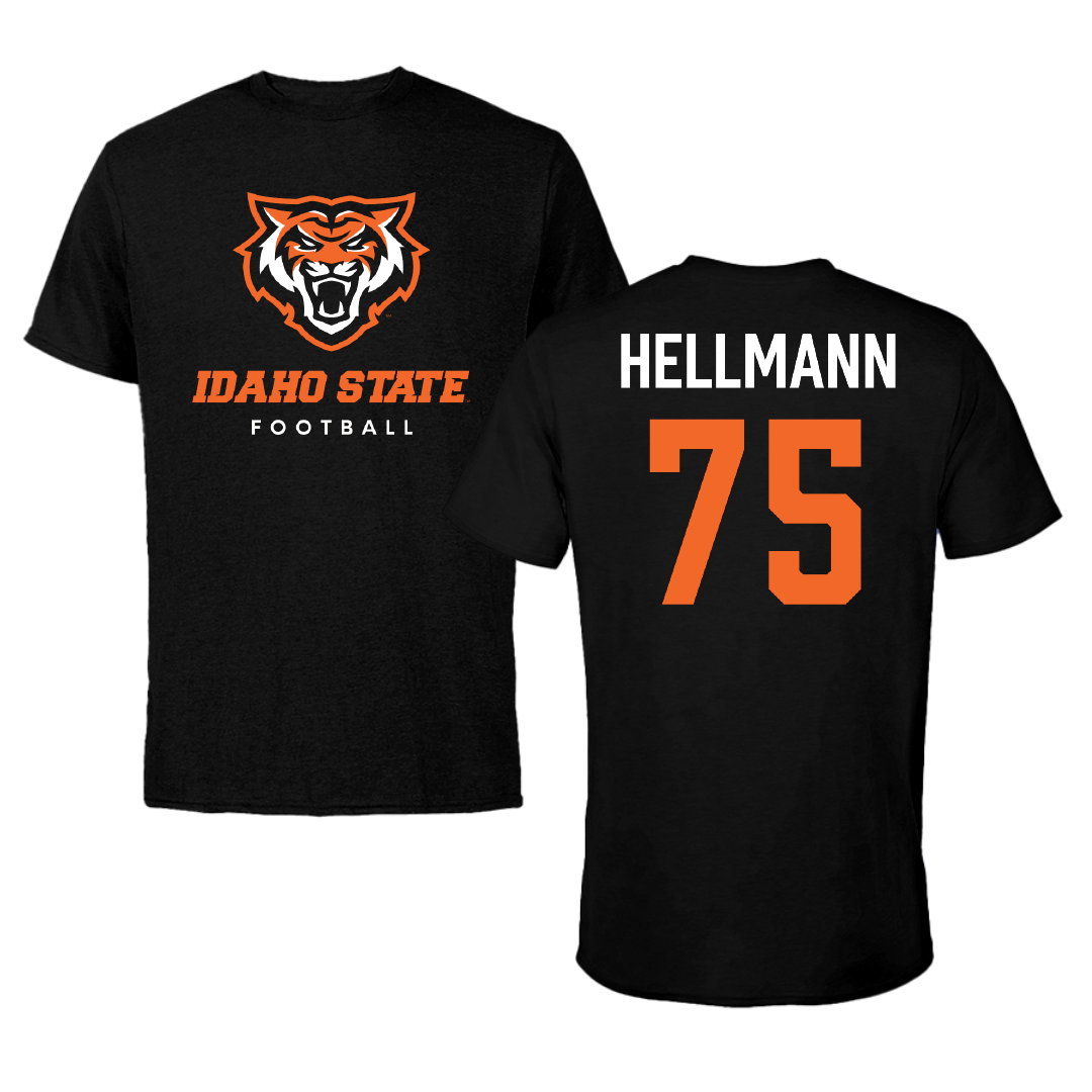 Idaho State University Football Black Performance Tee - #75 Jakob Hellmann