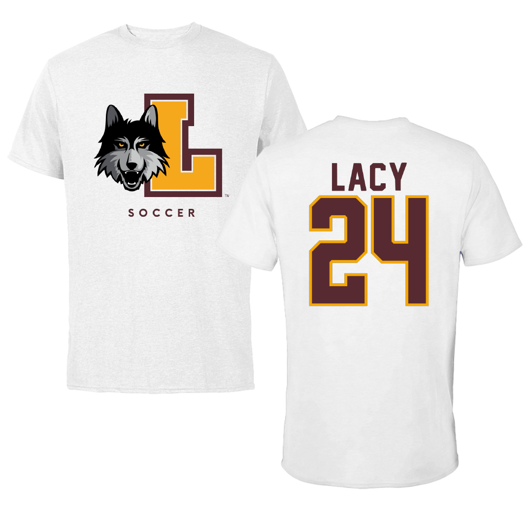 Loyola University-Chicago Soccer White Performance Tee - #24 Charlie Lacy