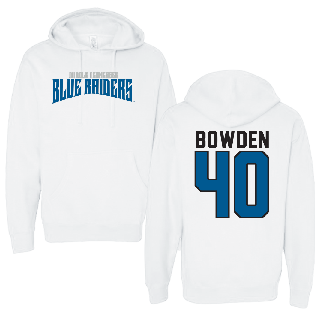Middle Tennessee State University Baseball White Classic Hoodie - #40 Konner Bowden