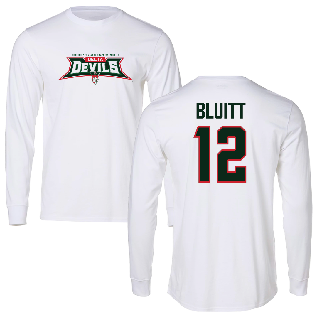 Mississippi Valley State University Football White Performance Long Sleeve - #12 Dayvian Bluitt