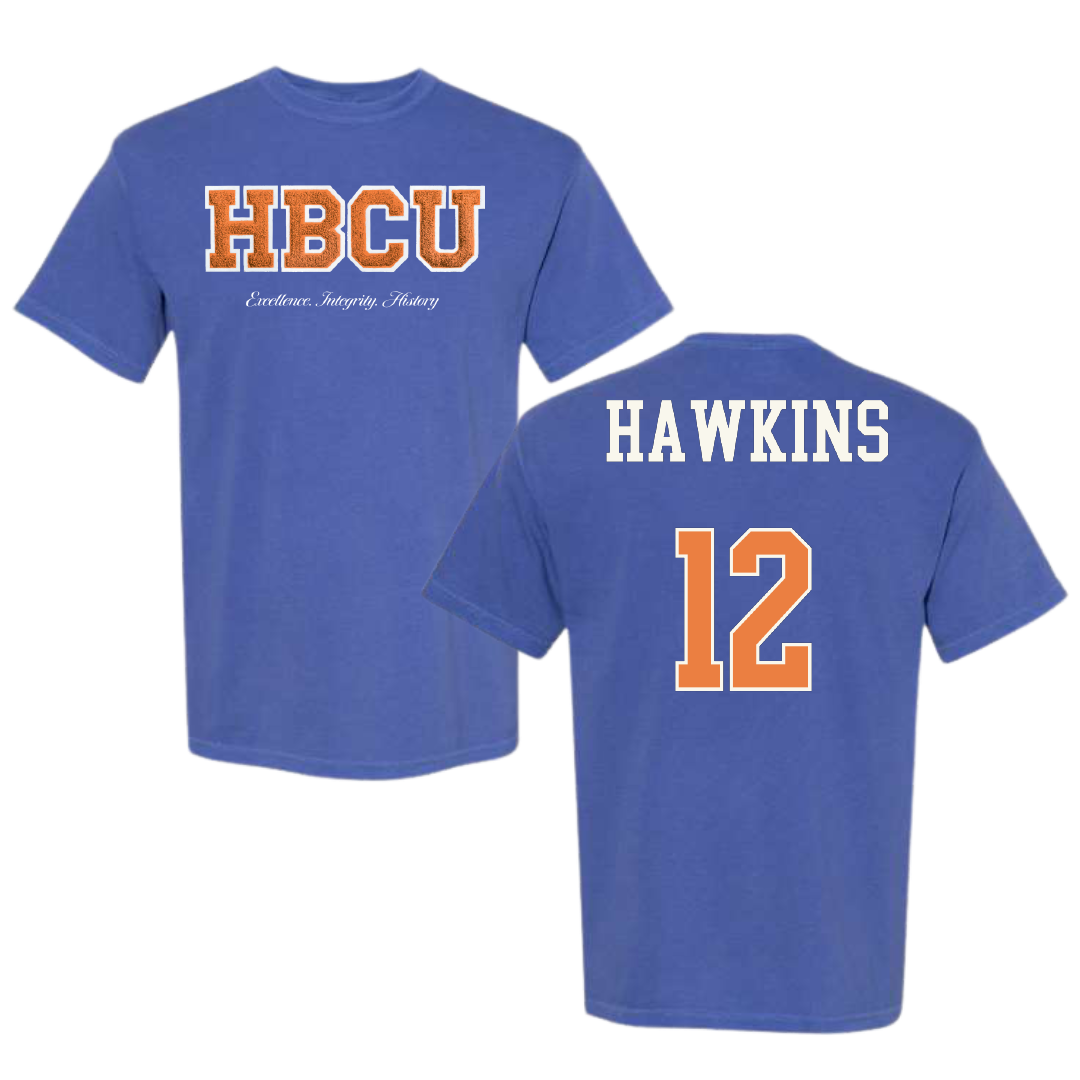 Morgan State University Lacrosse (M) Blue HBCU Varsity Comfort Colors Tee - #12 Derek Hawkins