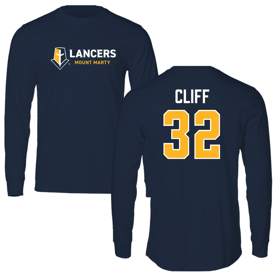 Mount Marty University Football Navy Performance Long Sleeve - #32 Isaac Cliff