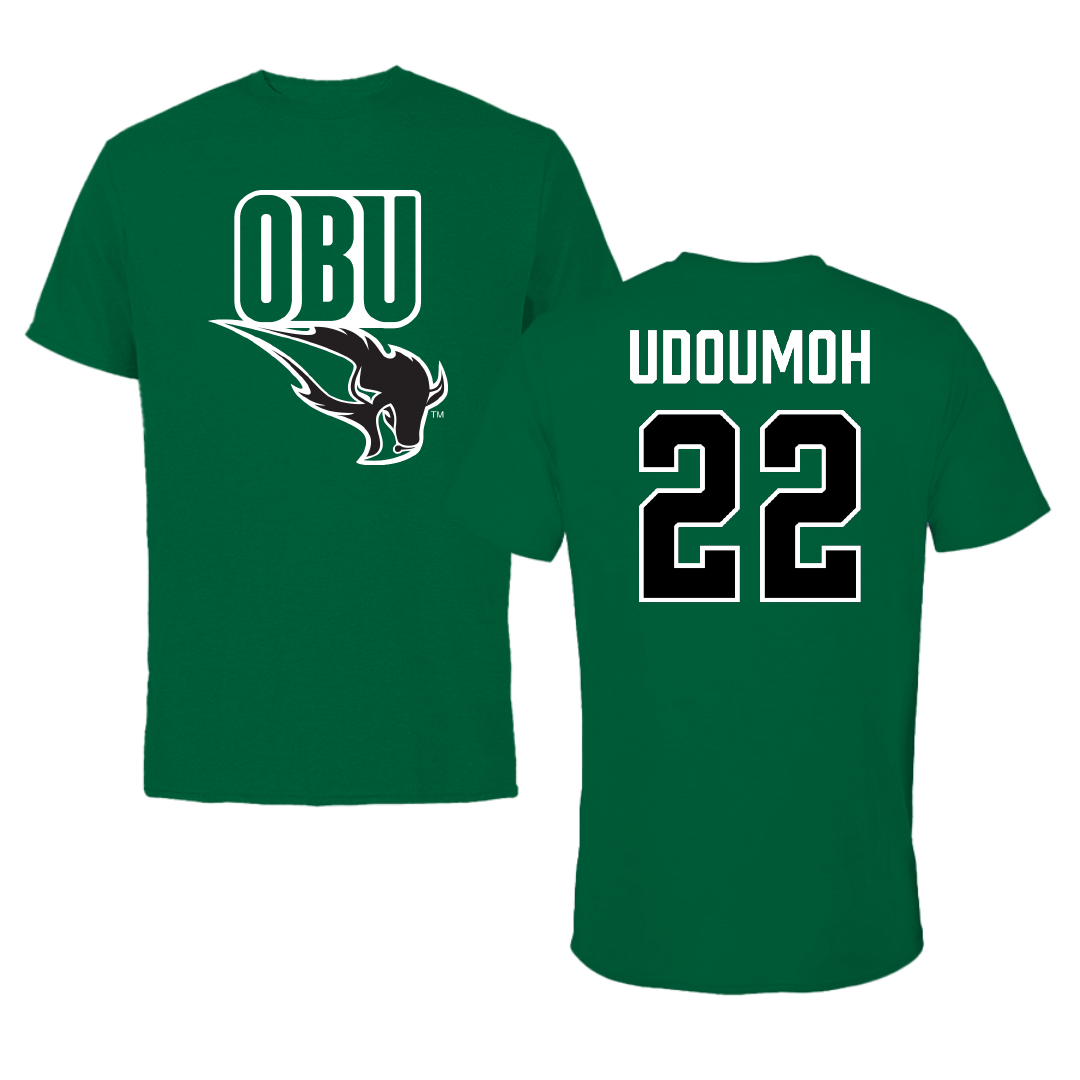 Oklahoma Baptist University Basketball Green Performance Tee - #22 Joshua Udoumoh
