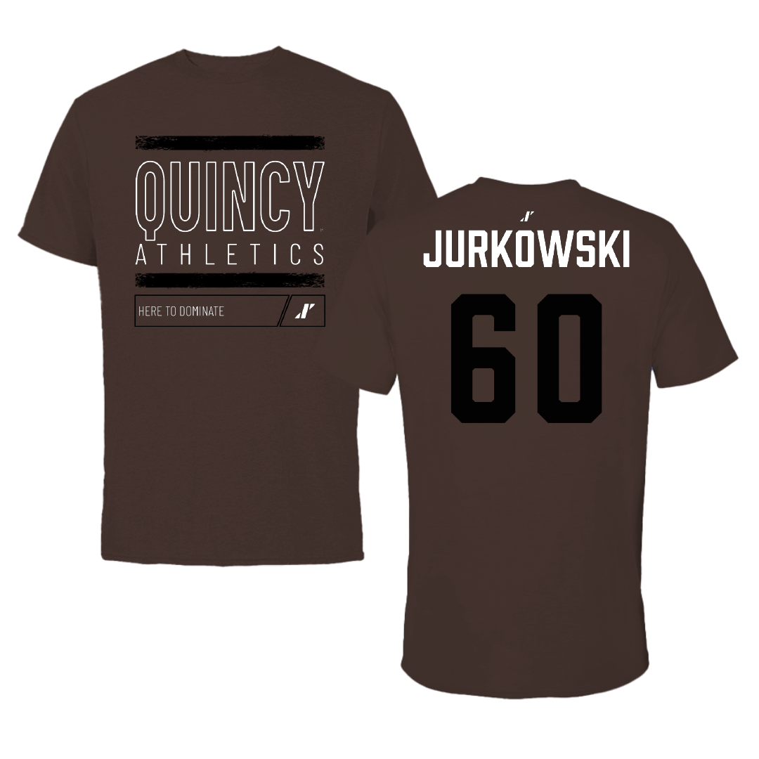Quincy University Football Brown Dominate Tee - #60 Jayden Jurkowski
