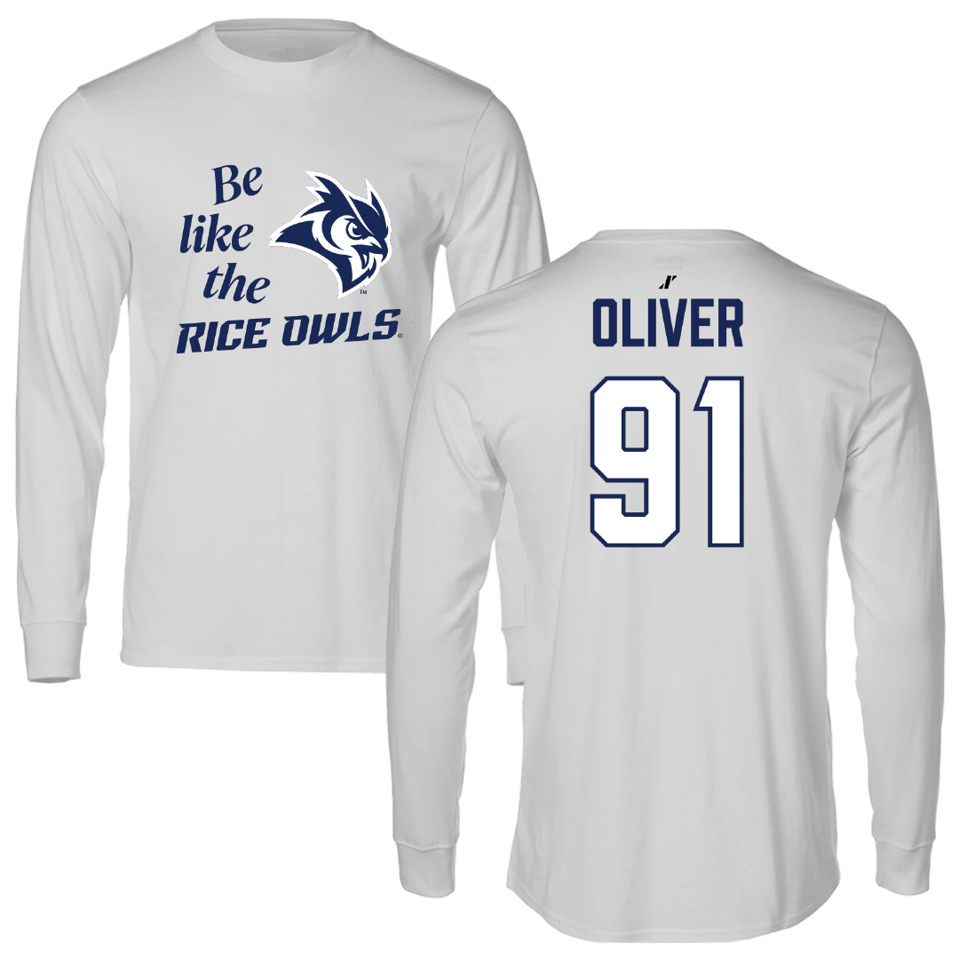 Rice University Football Light Gray Be Like Us Performance Long Sleeve - #91 Devon Oliver