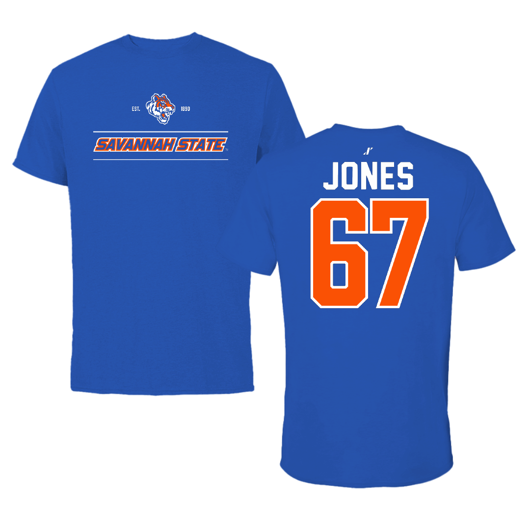 Savannah State University Football Blue General Performance Tee - #67 Arnez Jones