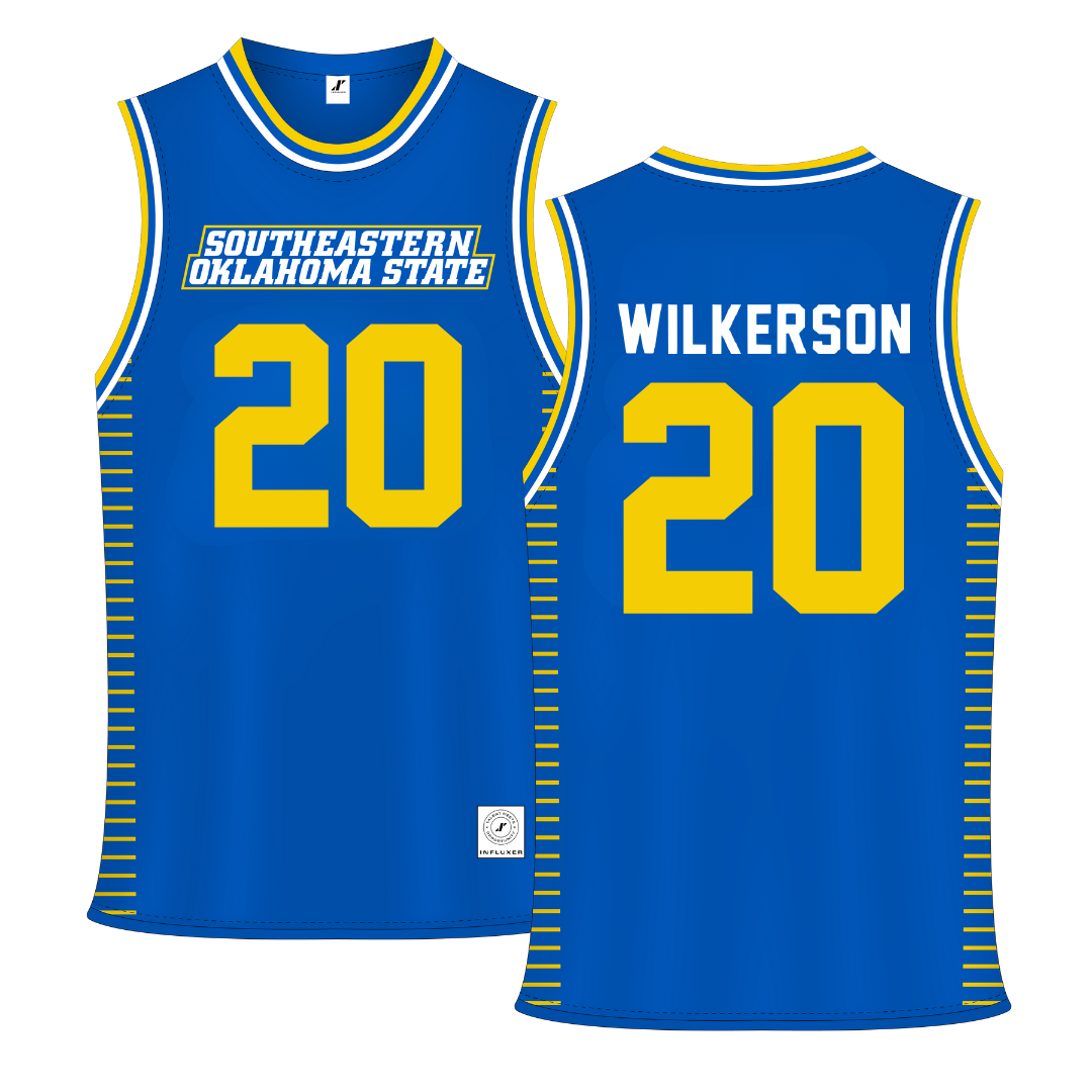 Southeastern Oklahoma State University Blue Basketball Jersey - #20 Ethan Wilkerson