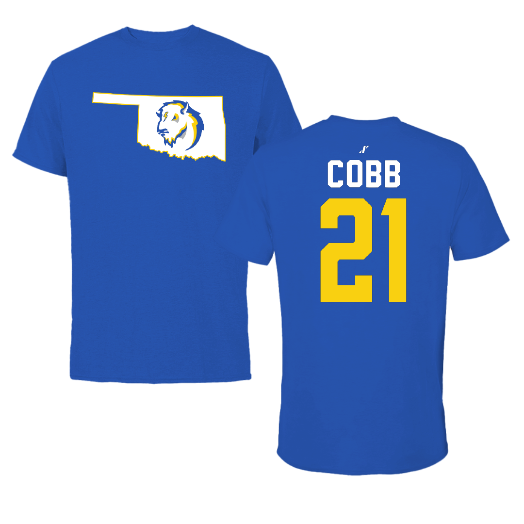 Southeastern Oklahoma State University Football Blue State Tee - #21 Johnathon Cobb