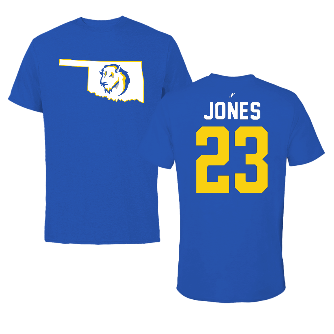 Southeastern Oklahoma State University Football Blue State Tee - #23 Joseph Jones