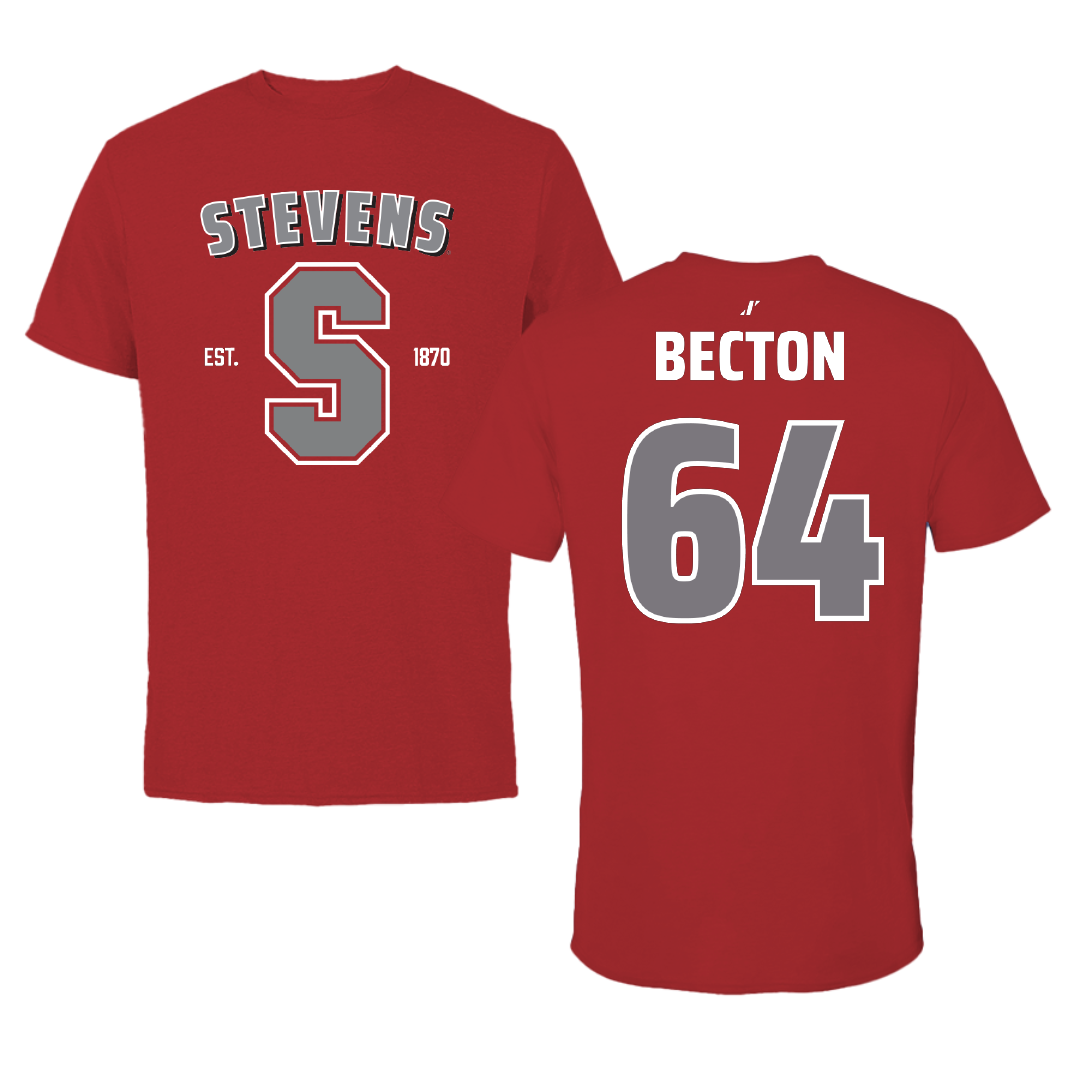 Stevens Institute of Technology Lacrosse Canvas Red General Tee - #64 Andrew Becton