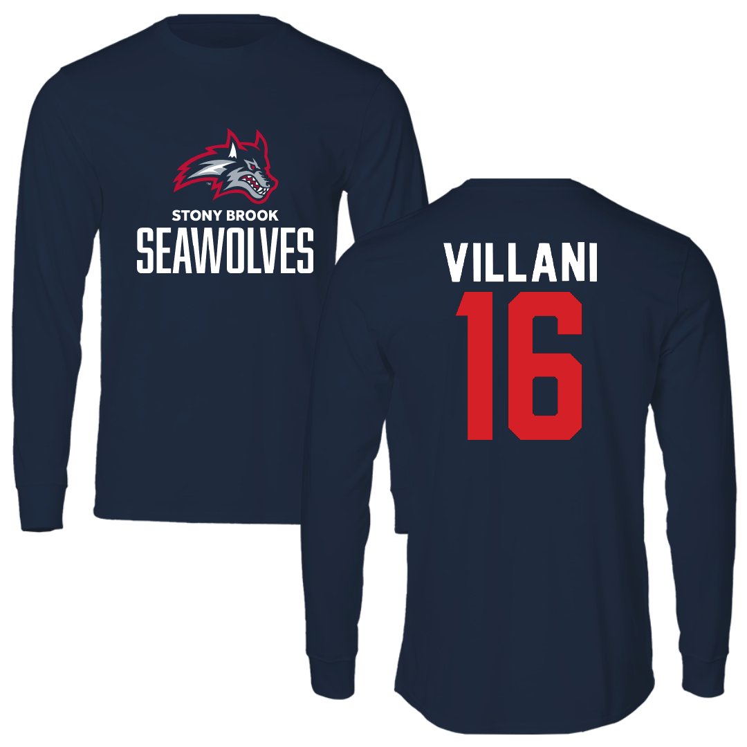 Stony Brook University Baseball Navy Performance Long Sleeve - #16 Mike Villani