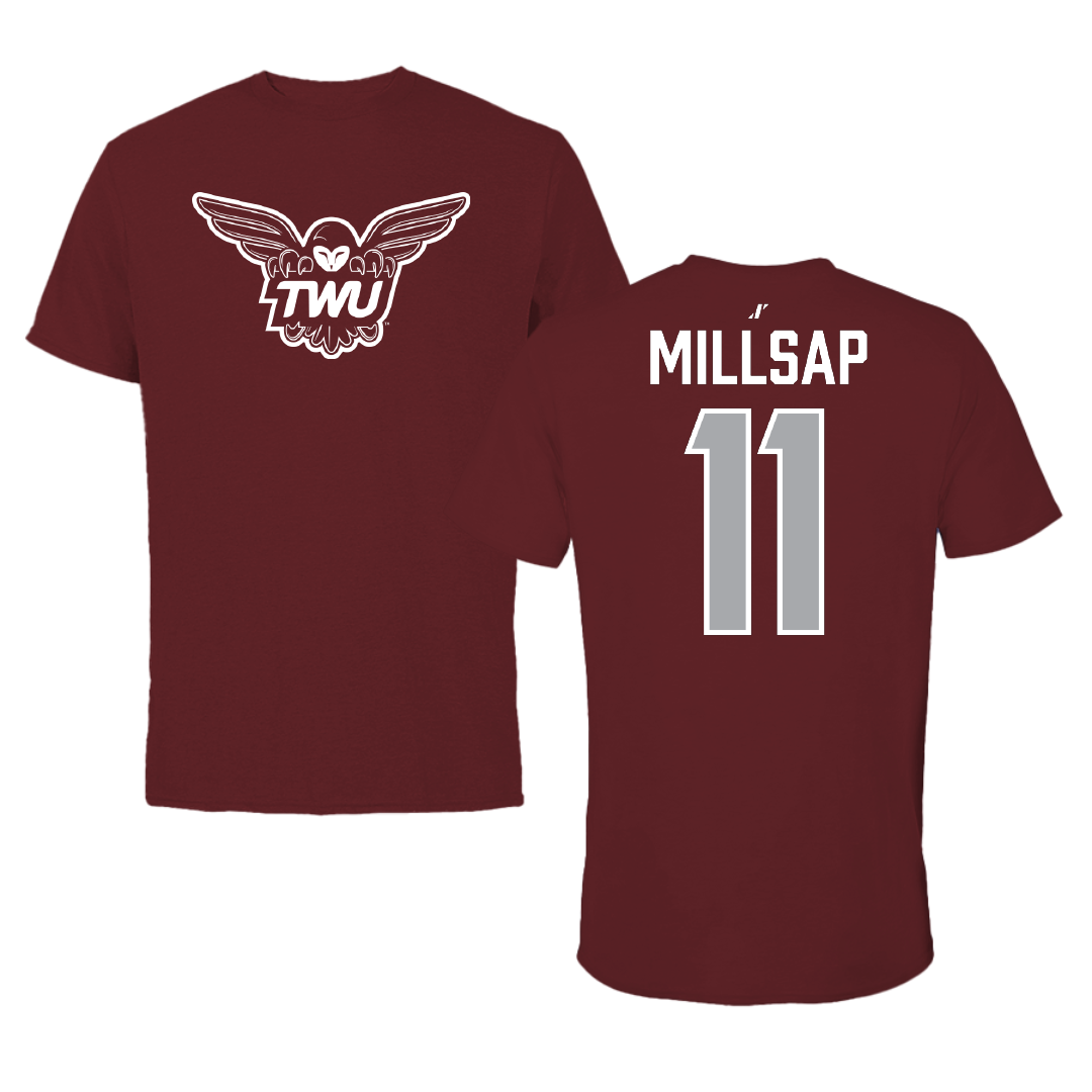 Increase quantity for Texas Woman's University Volleyball Maroon Tee - #11 Cat Millsap