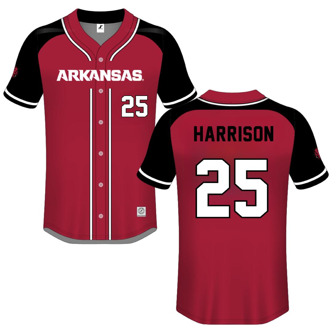 University of Arkansas Red Button-Down Jersey - #25 Cameryn Harrison