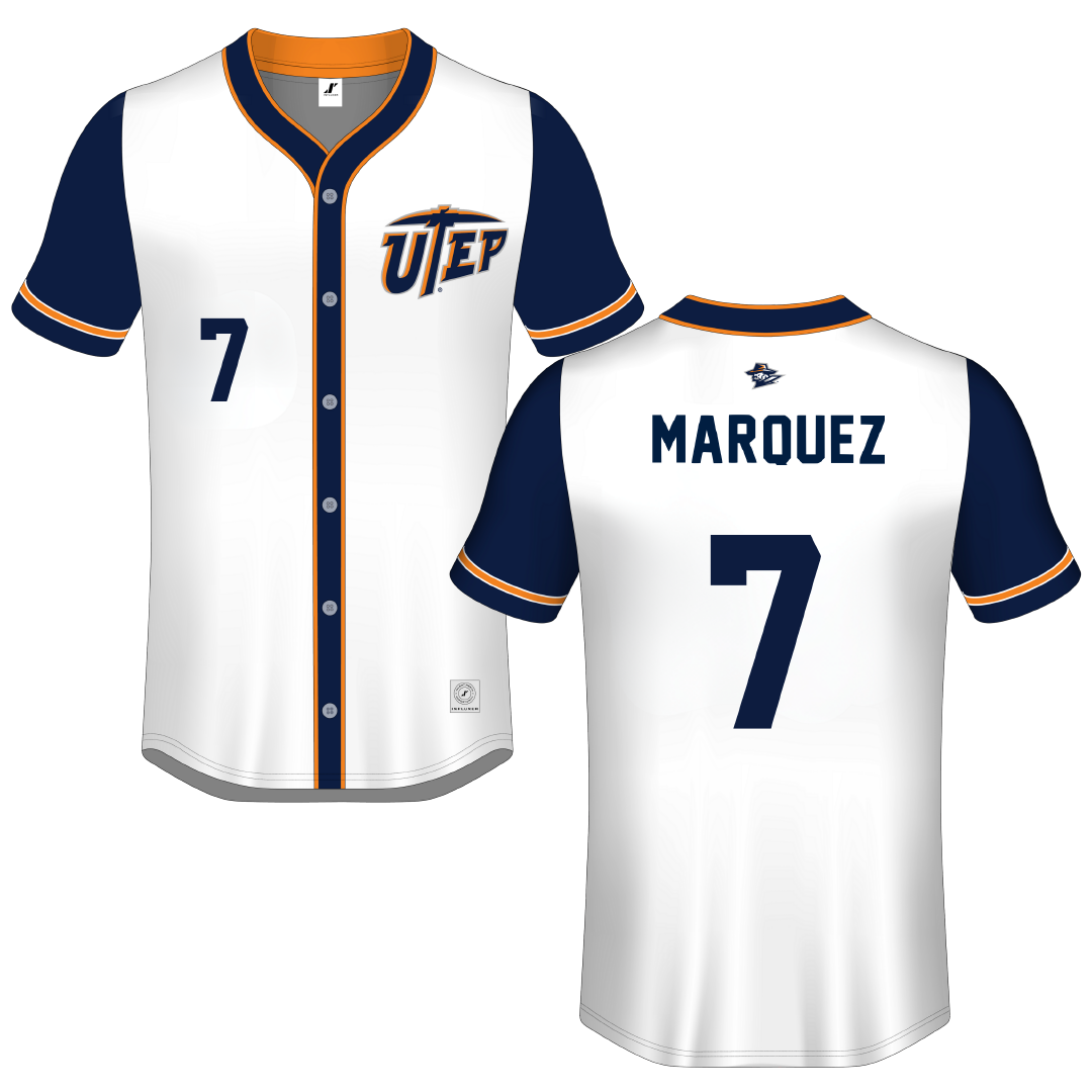 University of Texas at El Paso White Button-Down Jersey - #7 Cece Marquez