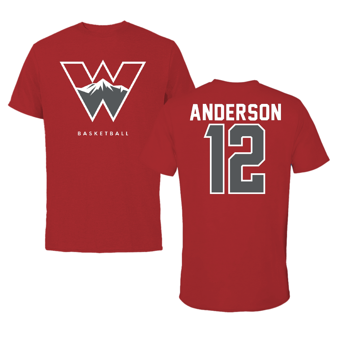 Western Colorado University Basketball Canvas Red Tee - #12 Trey Anderson