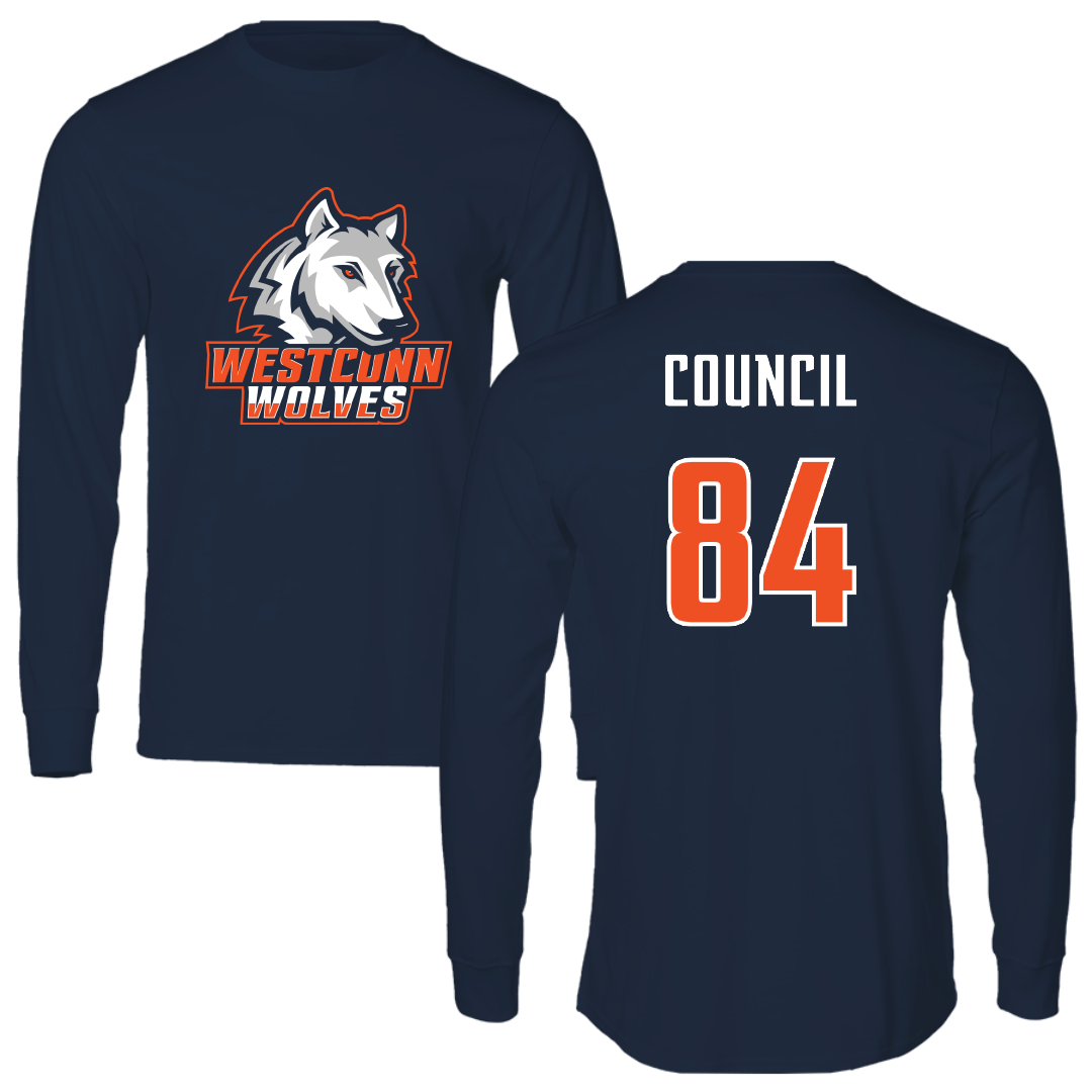 Western Connecticut State University Football Navy Wolves Performance Long Sleeve - #84 Gerald Council