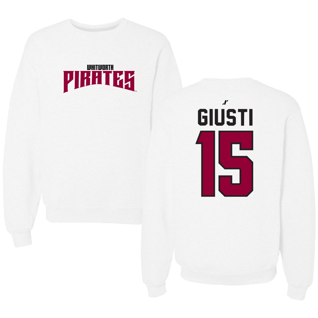 Whitworth University Baseball White Classic Crewneck - #15 Dominic Giusti