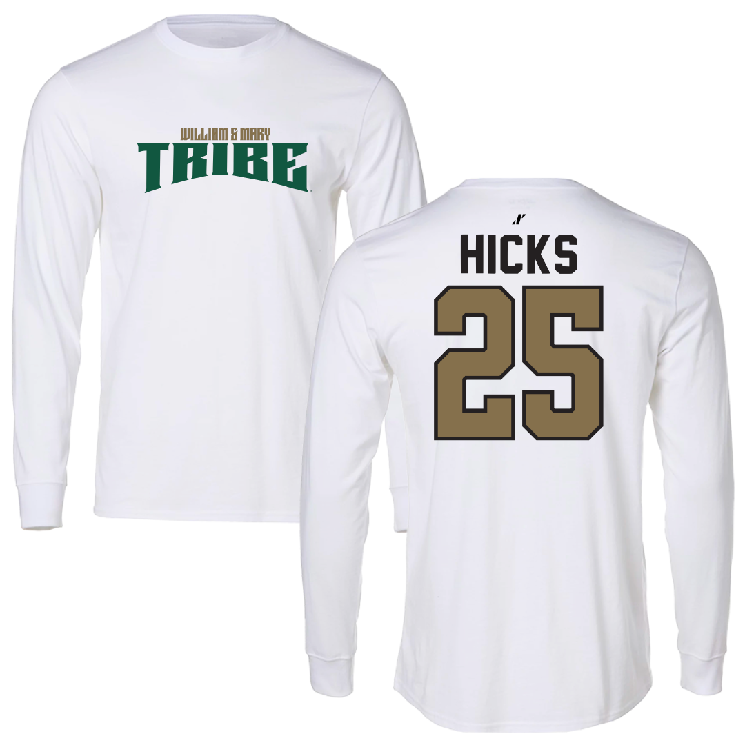 William & Mary Basketball White Classic Performance Long Sleeve - #25 Miles Hicks