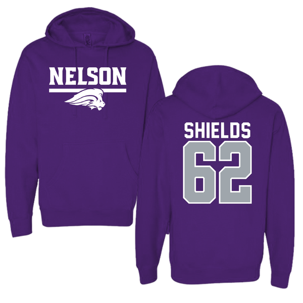 Nelson University Football Purple Hoodie - #62 A.J. Shields