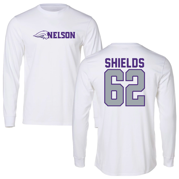 Nelson University Football White Long Sleeve - #62 A.J. Shields
