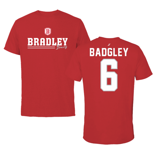 Bradley University Softball Red Tee - #6 Abbott Badgley
