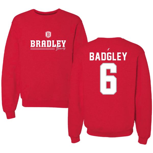 Bradley University Softball Red General Crewneck - #6 Abbott Badgley