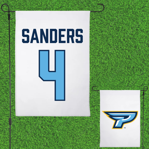 Point University Football White Garden Flag - #4 Adam Sanders