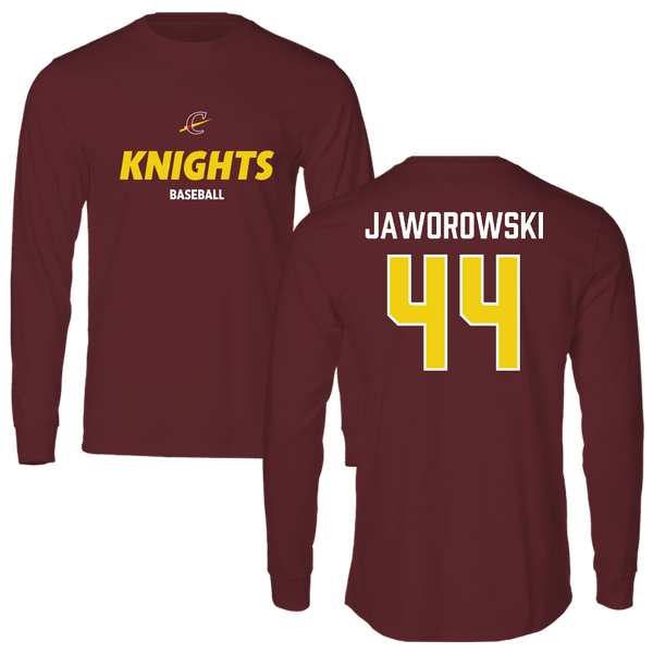 Calvin University Baseball Maroon Performance Long Sleeve - #44 Aidan Jaworowski