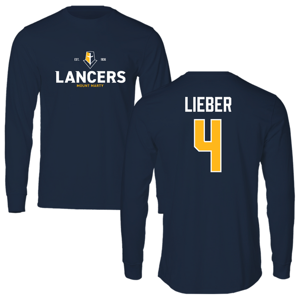 Mount Marty University Basketball Navy Performance Long Sleeve - #4 Aiden Lieber