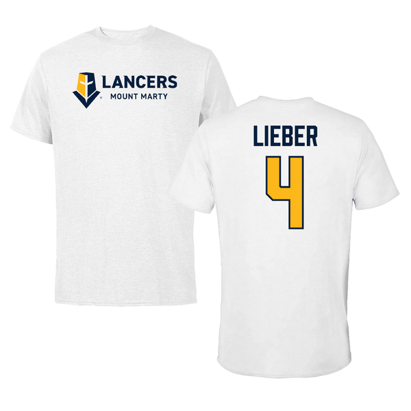 Mount Marty University Basketball White Classic Tee - #4 Aiden Lieber