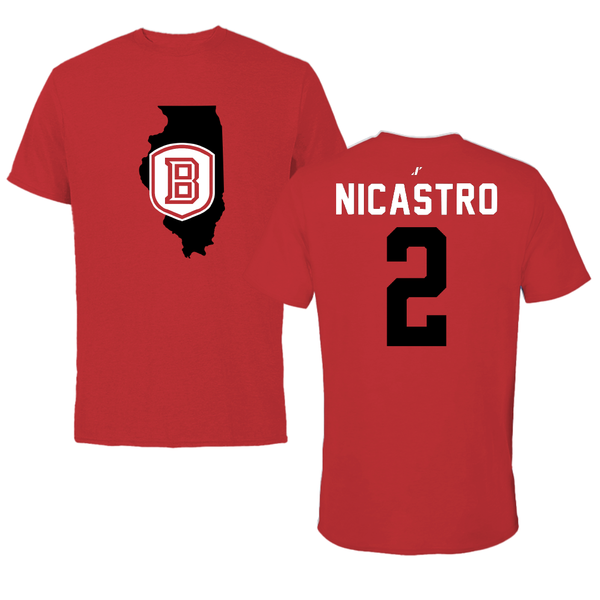 Bradley University Soccer Red State Tee - #2 Alex Nicastro