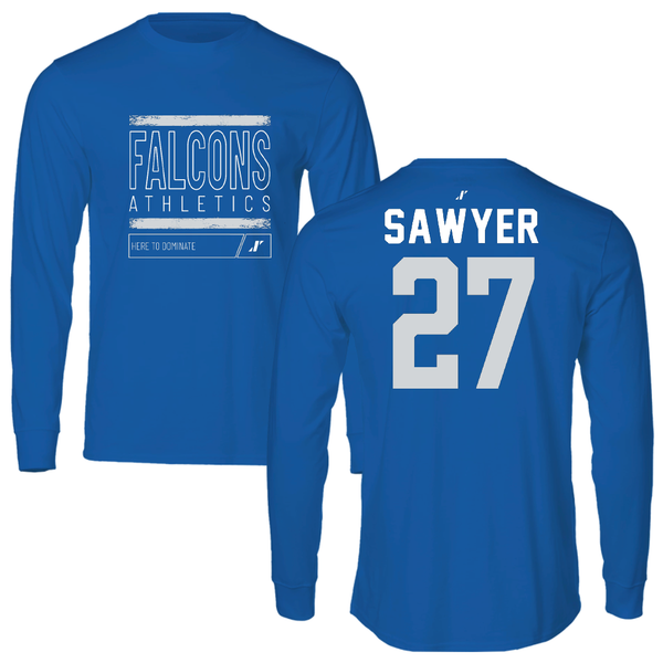 Albertus Magnus College Ice Hockey Blue Dominate Long Sleeve - #27 Aliyah Sawyer