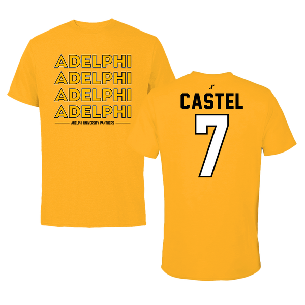 Adelphi University Soccer Gold Tee - #7 Victor Castel