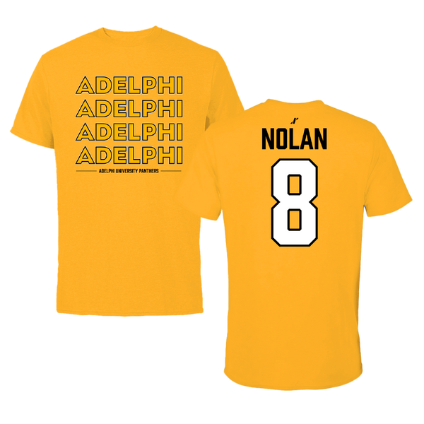 Adelphi University Soccer Gold Tee - #8 Sam Nolan