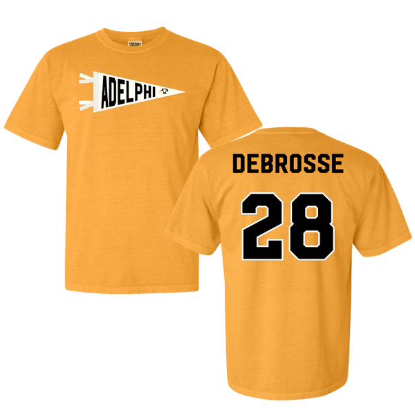 Adelphi University Soccer Gold Pennant Comfort Colors Tee - #28 Richard DeBrosse