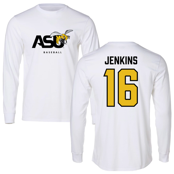Alabama State University Baseball White Long Sleeve - #16 Quentin Jenkins