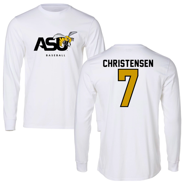 Alabama State University Baseball White Long Sleeve - #7 Jaxon Christensen