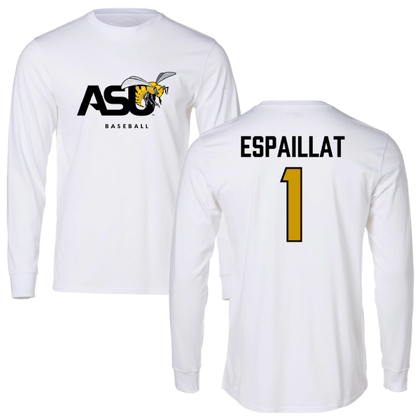 Alabama State University Baseball White Performance Long Sleeve - #1 Alex Espaillat