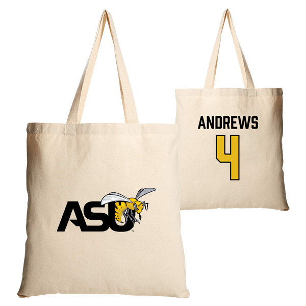 Alabama State University Basketball Tan Canvas Tote Bag - #4 Mario Andrews