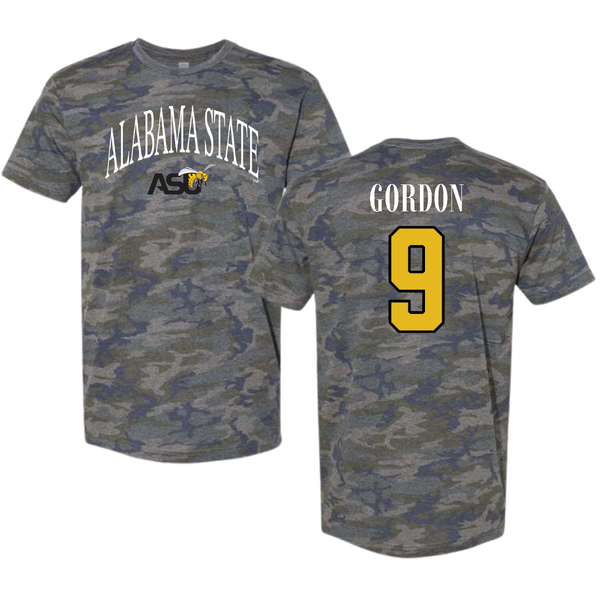 Alabama State University Football Vintage Camo Tee - #9 Cameron Gordon