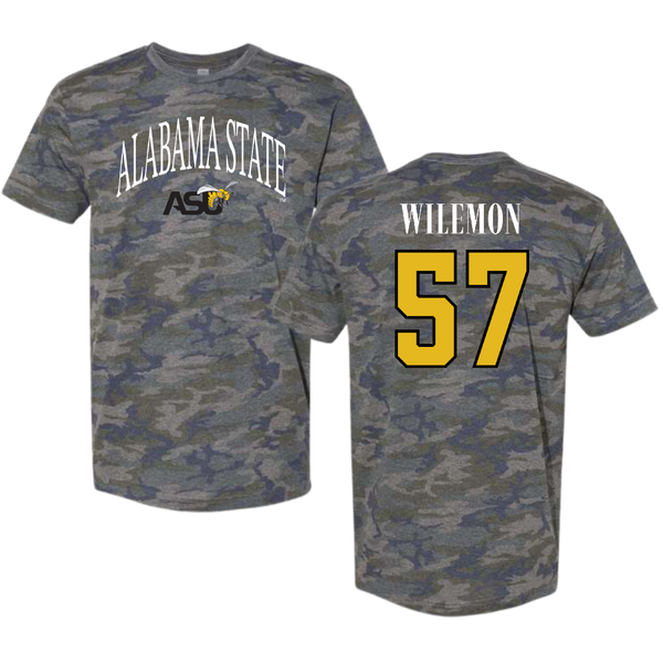 Alabama State University Football Vintage Camo Tee - #57 Garrett Wilemon