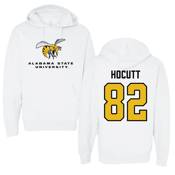 Alabama State University Football White Block Hoodie - #82 Will Hocutt