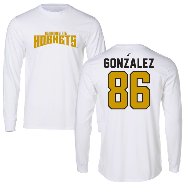 Alabama State University Football White Classic Long Sleeve - #86 Drake Gonzalez