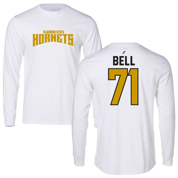 Alabama State University Football White Classic Performance Long Sleeve - #71 Kriston Bell