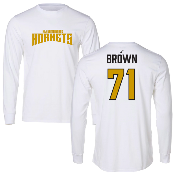 Alabama State University Football White Classic Performance Long Sleeve - #71 Isaiah Brown