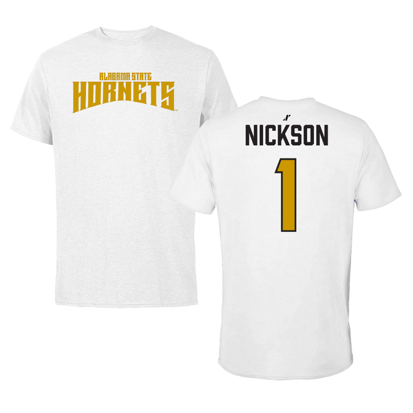 Alabama State University Football White Classic Performance Tee - #1 Willie Nickson