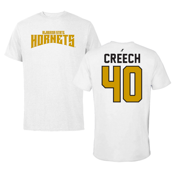 Alabama State University Football White Classic Tee - #40 Dylan Creech