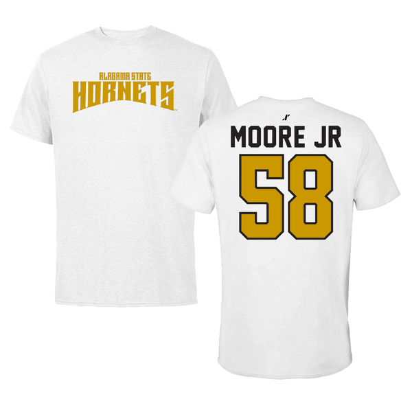 Alabama State University Football White Classic Tee - #58 Michael Moore Jr