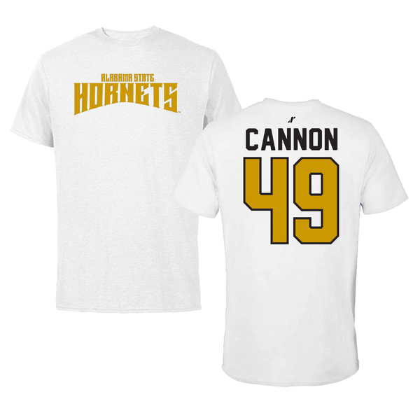 Alabama State University Football White Classic Tee - #49 Baylor Cannon